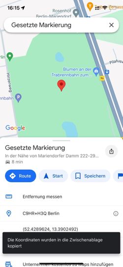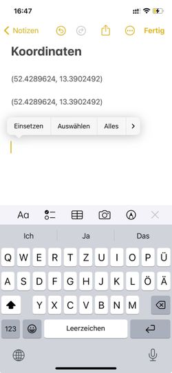 Jetzt können Sie einfach die Koordinaten antippen, um sie in die Zwischenablage zu kopieren.