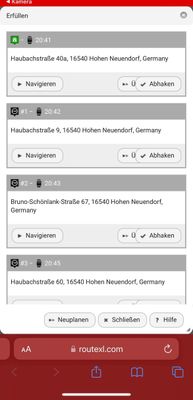 In der mobilen Ansicht kann man auf "Navigieren" klicken, um Google Maps oder eine andere Navigationsapp zu öffnen und zum nächsten Ziel zu navigieren. Dann gibt es noch den Knopf "Abhaken", der eine Adresse einfach aus der Liste verschwinden lässt und sie damit als erledigt markiert. Leider kann man sie danach nicht mehr zurückholen.