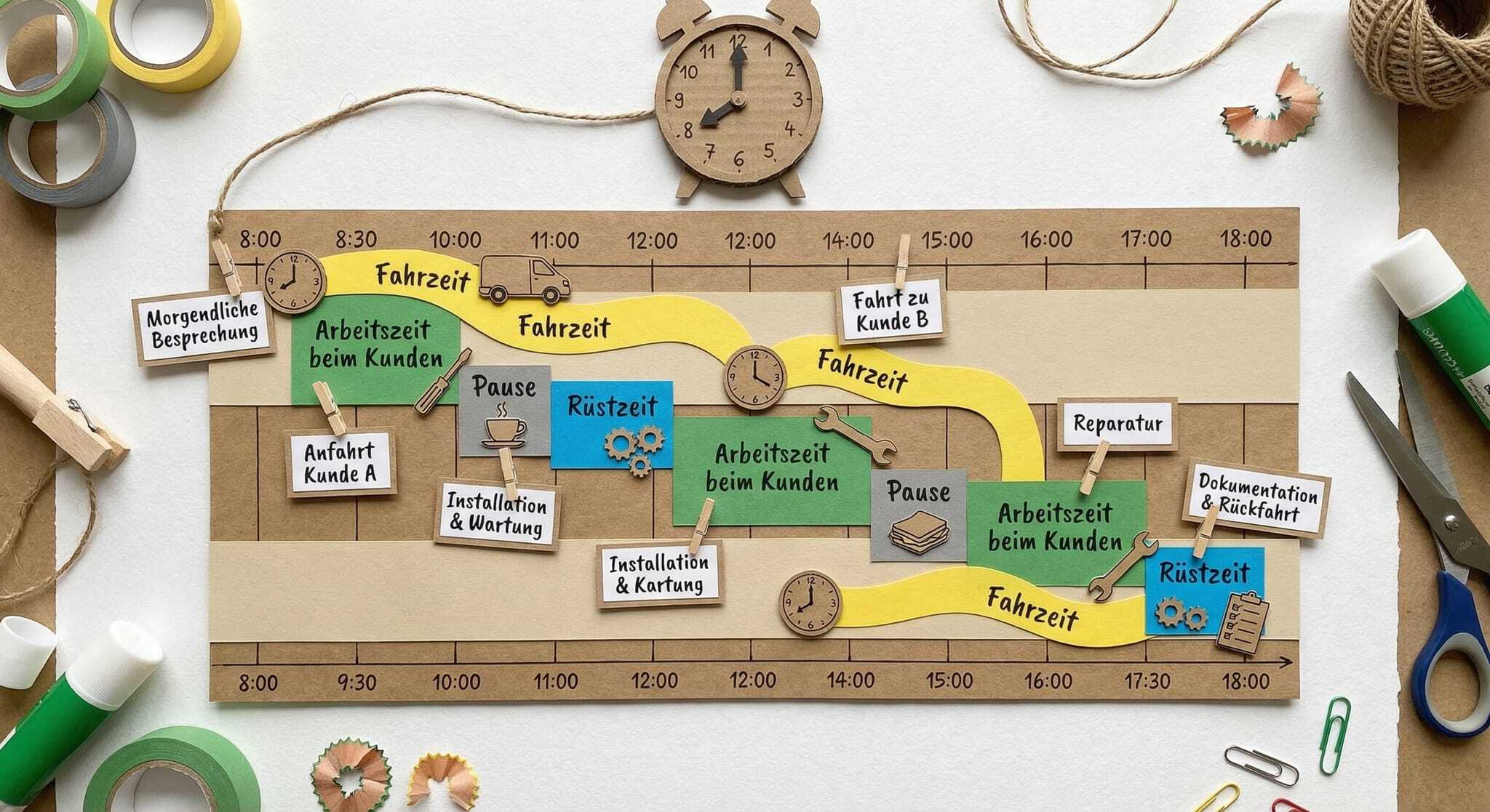 Wann beginnt die Arbeitszeit? Beim Verlassen der Wohnung? Beim Eintreffen beim Kunden? Auf dem Weg zwischen zwei Kunden? Die Abgrenzung von Fahrt-, Arbeits- und Ruhezeiten ist eine der größten Stolperfallen. Ohne klare Regeln und ein geeignetes System entstehen Streitigkeiten und rechtliche Risiken.